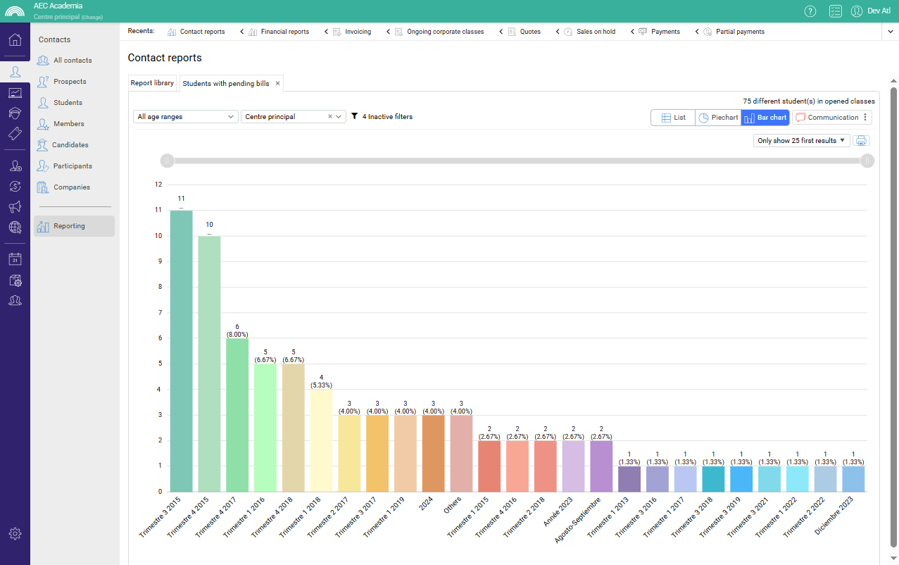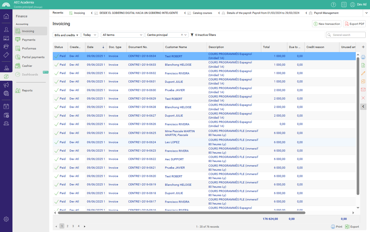 With AEC you will be able to integrate your academy's invoicing and make it compatible with your country's regulations, automatically manage payments, debts and financial reports.