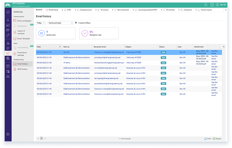With AEC Academia you can automate reminders, messages to parents, course promotions, upsells and behavioral emails.