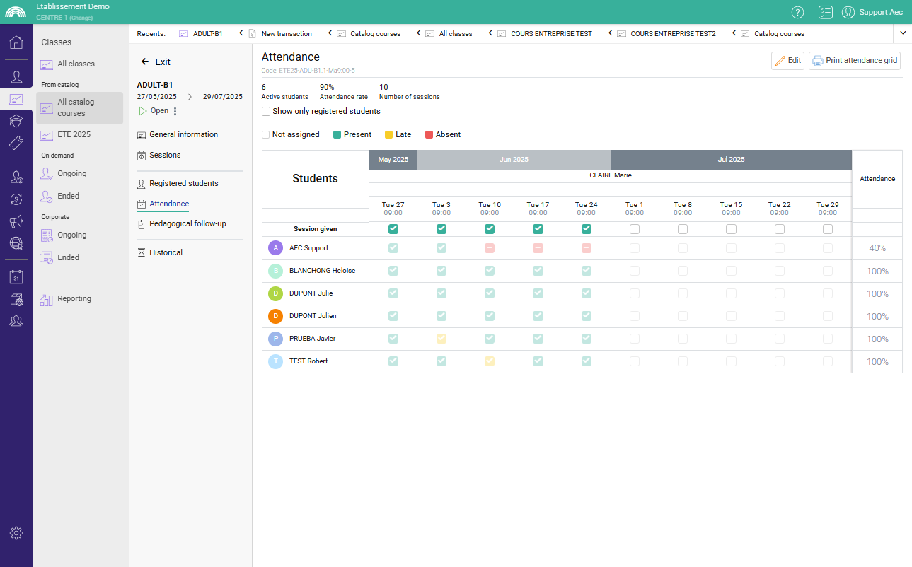 Full control of the teaching activity without relying on manual reporting